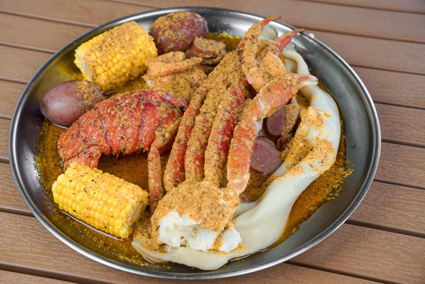 Picture of a seafood boil from Happy Crab in Ballard, Seattle, Washington.